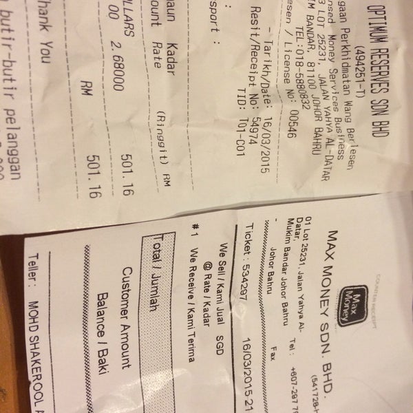 Photos At Money Changer Optimum Reserves Bank In Johor Bahru